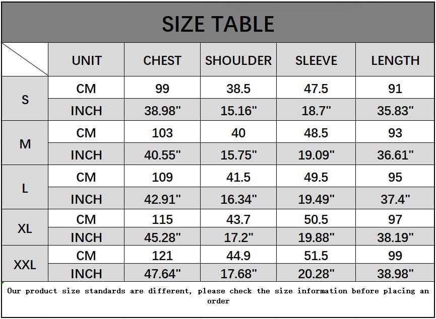 Sizes: S, M, L, XL, XXL